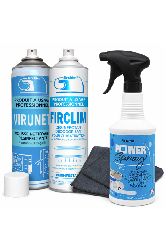 Pack clim Selecpack. 4 produits indispensables pour nettoyer efficacement votre climatisation comme un pro.